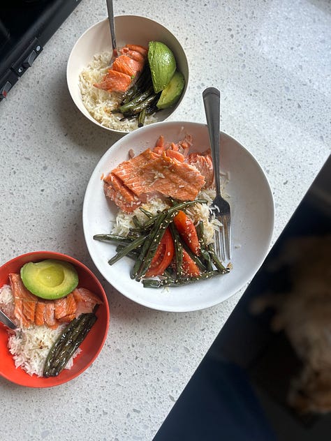 soooo i guess… it turns out that the universe has decided that it’s rice bowl with soy glazed fish and green bean (and tomato) season. and who am i to argue with the UNIVERSE?! shit was delicious!